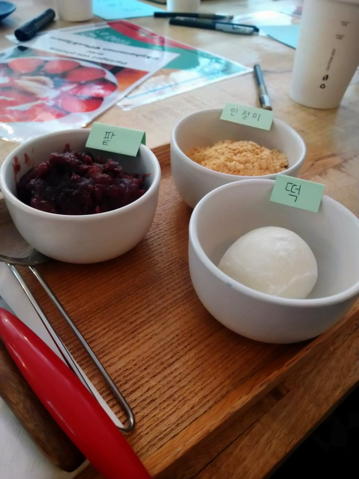 Nous étions 6 en tout à partager l’expérience : des influenceurs spécialistes de la culture coréenne mais aussi des pâtissiers. Un joli mélange enrichissant, même si les jeunes pâtissiers partaient quand même avec un petit avantage pour la confection du bingsu à venir… Spoiler : nous autres, débutants de la cuisine, nous en sommes quand même bien sortis !