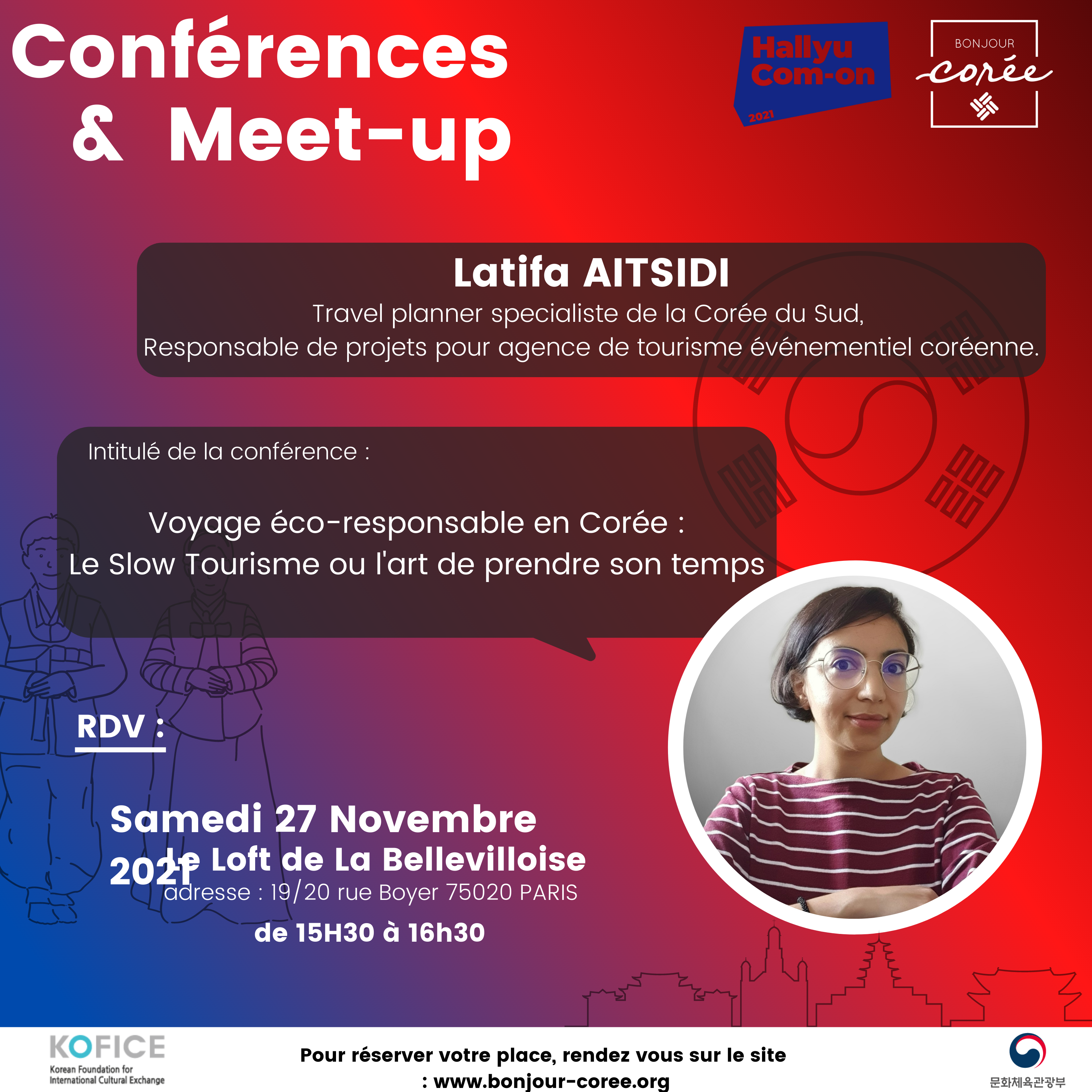 - Latifa Aitsidi : spécialiste du tourisme en Corée du Sud, travel planner et responsable marketing d’une agence de tourisme événementielle à Séoul.