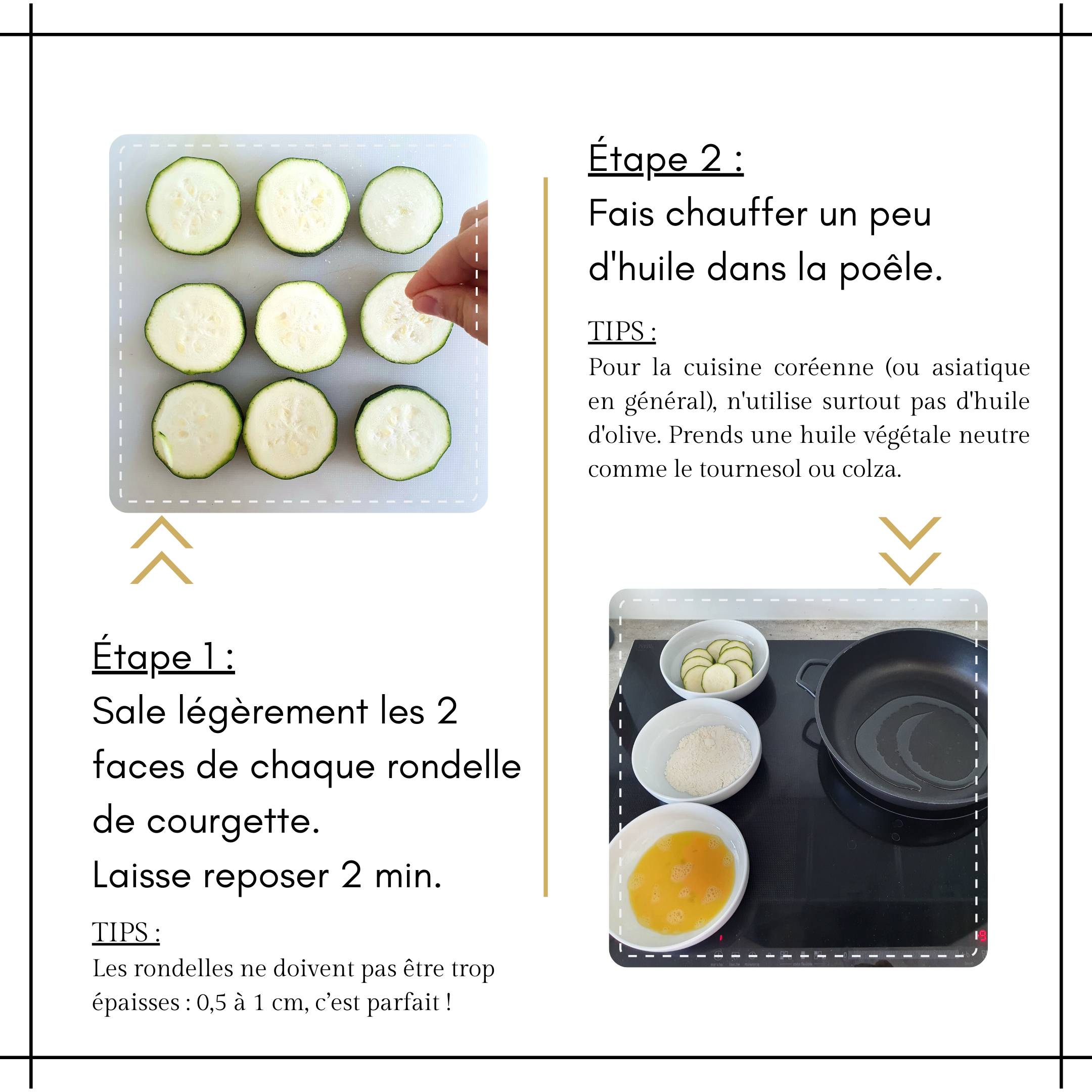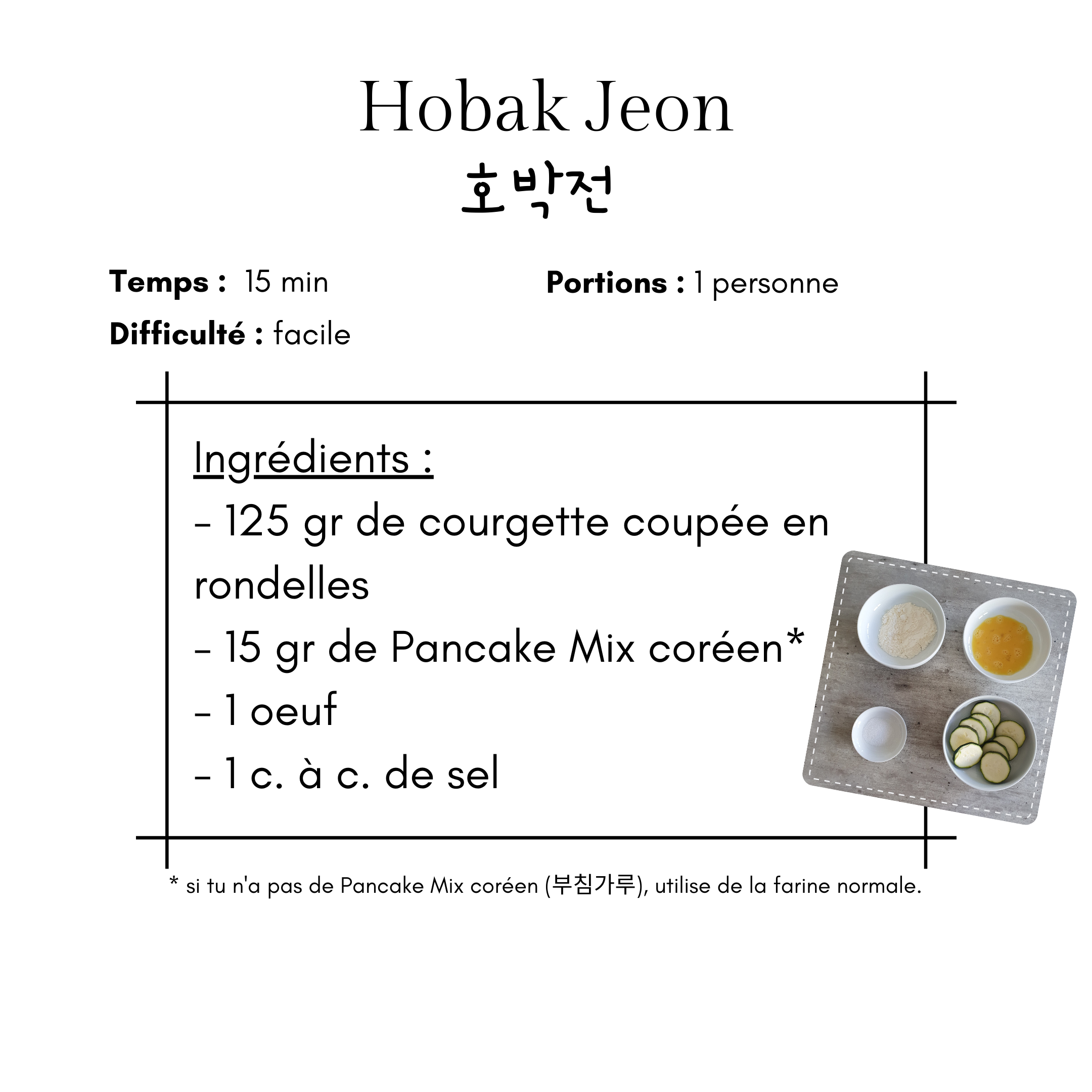 Quoi de mieux que des hobak jeon (호박전 – courgettes frites) pour accompagner son repas. Cheffe Elyna t’explique comment préparer ses délicieux accompagnements en seulement 15 minutes !