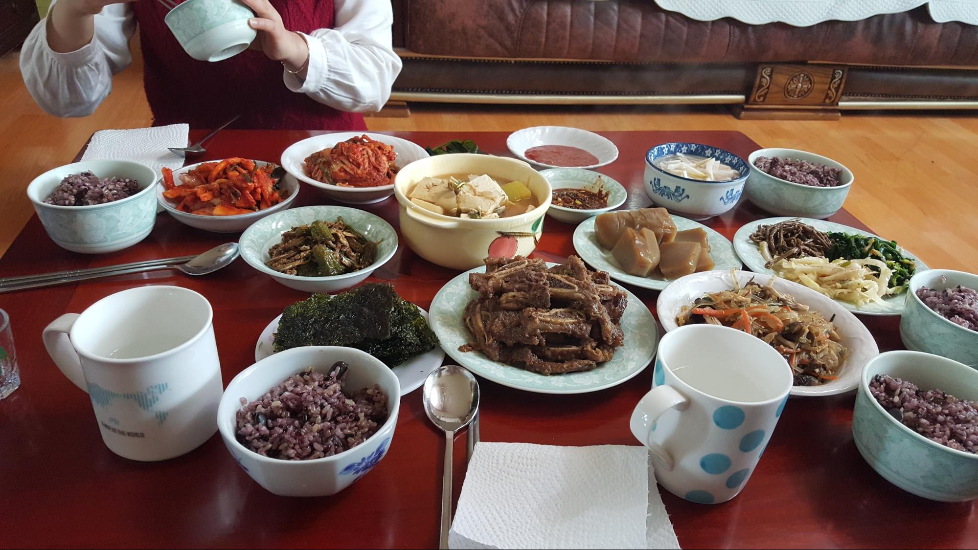 Une fois le sebae fini, on range tout et on prépare le repas. On y mange les offrandes du sebae, on boit l’alcool présenté aux ancêtres pour nous porter chance et on mange également le tteokguk (soupe de gâteaux de riz coupés en tranche). Cette soupe symbolise la purification du corps pour la nouvelle année. Les tteok étant blancs, ils représentent la pureté. Ce jour-là, on prend un an de plus (en Corée, on prend un an de plus le jour de seollal et non pas le jour de son anniversaire comme en France).